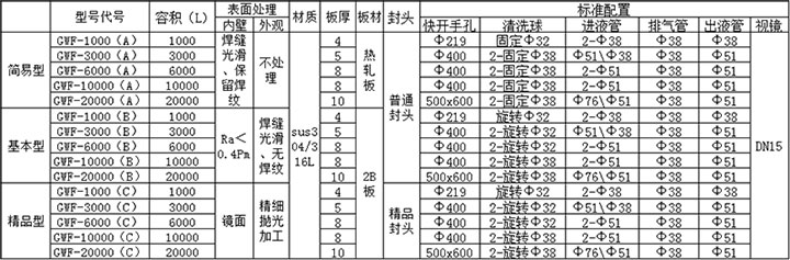 罐體上的配置,管口數(shù)量、大小可依據(jù)需要設(shè)計(jì)、制造。