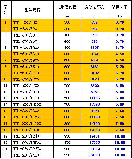 型號(hào)規(guī)格一覽表